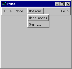 This item brings up a dialog box in which you can set the snap spacing. This spacing, in model length scale units, is used to draw a grid on the Main Window and mouse clicks on the main window only give positions on the grid intersections. Enter a value of 0. to turn snap off.