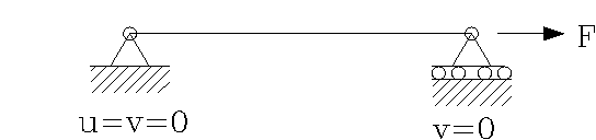 This bar is free to stretch horizontally, but all rigid motions are restricted. It is only by restricting the rigid body motions (translations and rotations) that we make the solution to the problem unique and capable of numerical solution. However, in the process we must make sure that we do not over constrain the problem and restrict the body from deforming.
