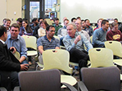 The dedication ceremony took place in the Gary J. Balas Atrium, where AEM Department Head Perry Leo gave a speech and unveiled a new plaque honoring Professor Balas. Faculty, staff, students, alumni, friends, and family attended the event. A reception was held after the ceremony and guests were encouraged to share memories of Professor Balas in celebration.