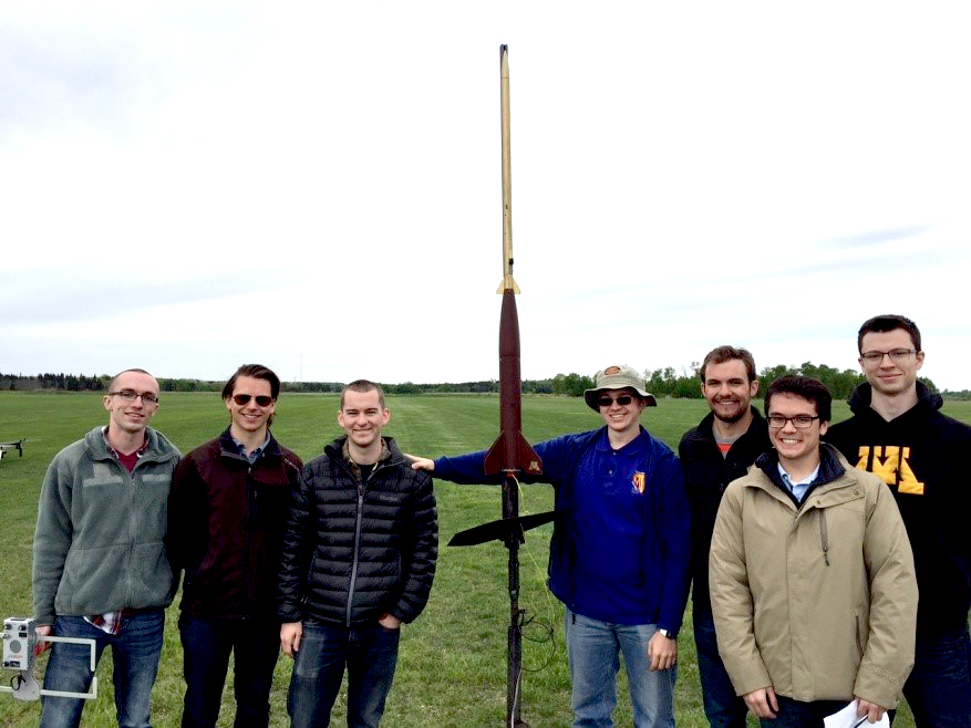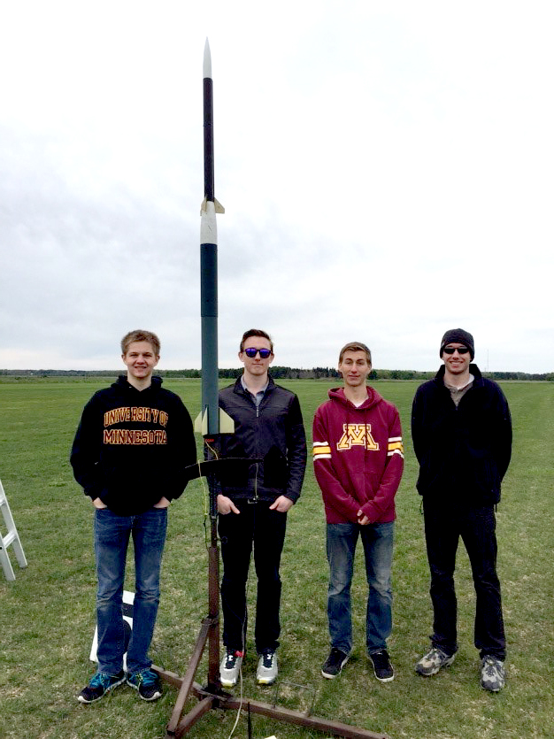 NASA’s MN Space Grant, led from the AEM Department, and Tripoli MN, a high-power rocketry club, collaborated to run the 2014-2015 Space Grant Midwest Rocketry Competition on May 19 and 20, 2015. In this competition teams of college students from around the nation designed, built, and flew high-power rockets to accomplish specific goals. Students gave oral presentations about their rocket designs in on May 19 then flew their rockets at the Tripoli launch site near North Branch on May 20.