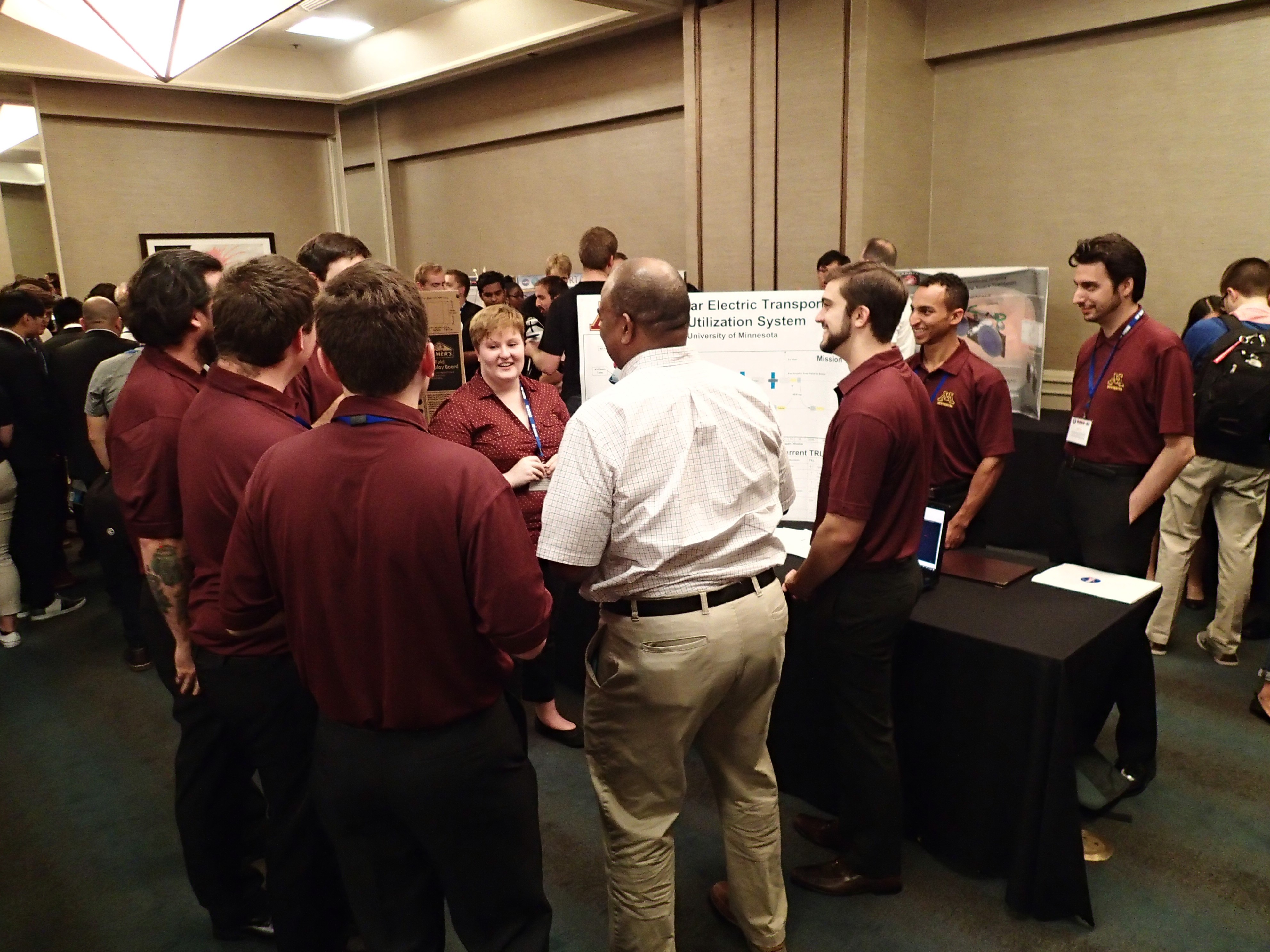 AEM RASC-AL team in their poster session answering questions from RASC-AL Judge and Co-chair Melvin Ferebee of NASA Langley Research Center.